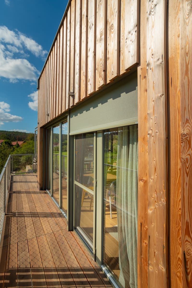 To, že na vás nevidí sousedé, neznamená, že jste v neprůhledné kobce. Naopak, průhled ven je umožněn a světlo, které k vám proudí, je velmi měkké a příjemné.