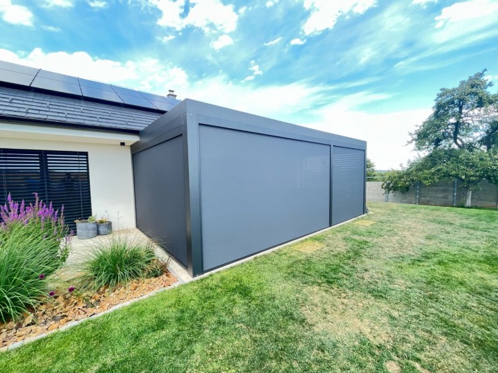 Tento typ rolety prodlužuje dobu, v níž můžete využívat svoji pergolu. Ostré slunce při zapadání tak již nikoho neobtěžuje a nepociťujete chlad a vlhkost při padání večerní rosy. Je možné tak získat další dva skvělé benefity, a to: efektivní ochrana před hmyzem a zvídavými pohledy od sousedů. Netáhne na nohy, nefouká do obličeje, slunce zároveň nepálí do očí a do zad. A večer kolem 22. hodiny je pořád ještě teplo, a když sprchne, boční stranou neprší dovnitř.