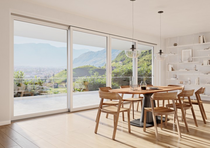 Terasové dvere HST MOTION sa vyznačují výrazně sníženým úzkym profilem, který umožňuje použití většího prosklení a ješte efektívnější průnik světla do místností. Pokročilé tepelnoizolační parametry zaručují nízke energetické ztráty a snížené náklady na vytápění budovy.