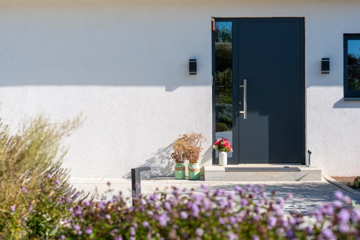 Hliníkové dveře jsou vhodnou volnou pro všechny typy domů. Nabízíme široký výběr dekorů a lakování. Možnost sladění barvy dveří s barvou oken.